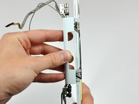 Remove the pieces of tape covering the display data and microphone cables near the bottom edge of the display.