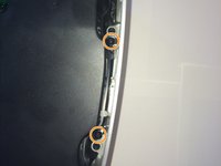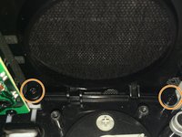 There are 2 more screws for each speaker. The speakers are symmetrical. Remove the 4 screws to free both speakers.