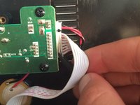 Using a pair of tweezers, remove the ribbon cable connector at the backup battery.