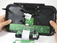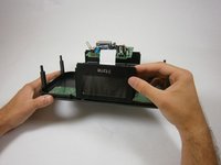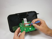 Use a plastic opening tool to pry and lift up the white zip connector attaching the LCD screen to the buttons.