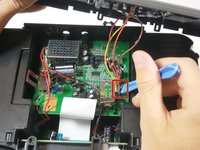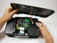 Use a plastic opening tool to pry and lift up the white zip connector holding the LCD screen to the buttons.