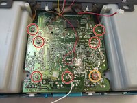 Remove the seven screws that are holding the motherboard in place: