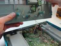 Unscrew the screws holding the speakers onto the body. One on each side: