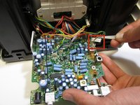 Unplug the eight wires attached to the circuit board with tweezers. If the wires are tight pliers might work better.