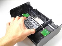 Turn the iHome 180 degrees so the speaker grille is facing you. Carefully lift the bottom case away from the rest of the body and tilt it as shown.