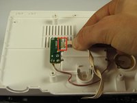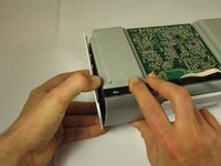 Using both hands, pull the housing siding away from the device while simultaneously lifting the motherboard and speaker assembly straight up.