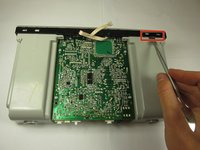 Using both hands, pull the housing siding away from the device while simultaneously lifting the motherboard and speaker assembly straight up.