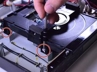 After removing the top of the device, locate the screws on the motherboard. Gently unscrew all four of the 3.5mm screws on the motherboard.