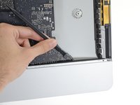 You may need to peel up the display adhesive lining the bottom edge of the iMac enclosure to access the screws.