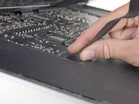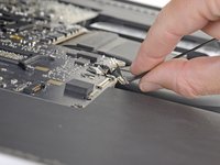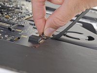 Unplug the left speaker cable by pulling it straight up out of its socket on the logic board.