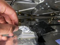 The third, and final, cable you will need to unplug is the TMDS connector. This is located under a rectangular strip of black tape that has a gray and black cord coming out of one end.