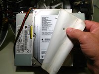 Begin by using a Spudger or your finger to peel back the tape that holds the Optical Drive data cable to the bottom of the Optical Drive.