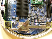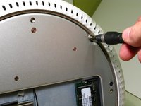 Remove the User Access Plate and set it aside. you now have access to the external memory module and Airport Extreme Card (if installed).