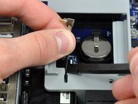 De-route the AirPort antenna out from under the AirPort bracket.