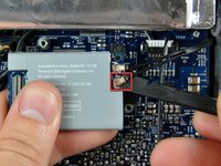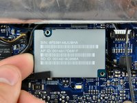 Lift the AirPort/Bluetooth board up from its left edge to separate it from its socket on the logic board.