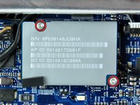 Remove the two T6 Torx screws securing the AirPort/Bluetooth board to the logic board.