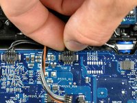 Disconnect the hard drive temperature sensor connector from the logic board by pulling it straight away from its socket.