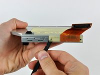 Peel back the aluminum EMI shield up off the lower three edges of the rear case.