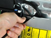 Maneuver the optical drive out of the rear case, minding the two plastic pins molded into the rear case near the open end of the optical drive that can break off.