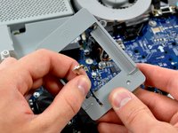 Remove the two 5.5 mm T6 Torx screws securing the AirPort bracket to the logic board.