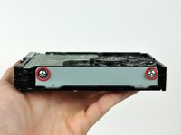 Remove the two T8 Torx screws securing the hard drive bracket to the connector side of the hard drive.
