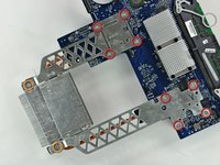 Remove the 6.1 mm T8 Torx screw from both sides of the heat sink nearest the logic board (two screws total).