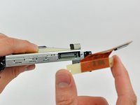 • Maneuver the optical drive out of the rear case, minding the two plastic pins molded into the rear case near the open end of the optical drive that can break off.