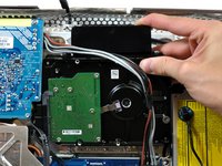 Lift the hard drive off its lower pins and pull it out of the rear case, minding the power supply cables that may get caught.