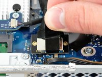 Unplug the power supply cable bundle from the logic board by simultaneously depressing the locking mechanism (toward yourself) with a spudger and pulling the connector away from its socket.