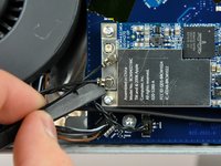 Remove the two T6 Torx screws securing the AirPort card to the logic board.