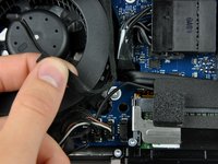 Use the attached black tab to pull the data display cable connector away from the logic board.
