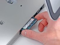 Pull the black plastic RAM tab away from your iMac to eject the RAM chip.
