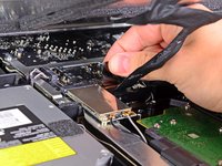 Pull the hard drive temperature sensor connector toward the top edge of the iMac to disconnect it from its socket on the logic board.