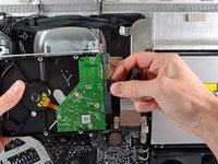 Slightly rotate the hard drive out of the outer case and lift it up off its mounting pins toward the top edge of the iMac.