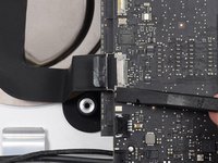 If necessary, use a pair of tweezers to gently peel the tape securing the left speaker cable to the SATA data/power cable.