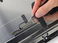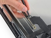 Peel up the piece of tape securing the thermal sensor to the back of the display assembly.