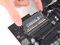 Agree with Mitch K’s procedure. The only added tip I would throw in is to use two 45 degree tweezers with their plastic covers still installed to easily pop loose the RAM. I couldn’t get the plastic spudger tool to work myself, but the tweezers easily reach the RAM clips. Just make sure the plastic covers are installed and you won’t be in danger of scratching or shorting anything out.