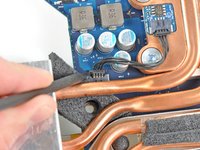 Pull the CPU fan connector toward the left edge of the iMac to disconnect it from the logic board.