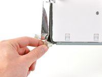 Peel the two highlighted EMI shield tabs off the frame of the LCD.