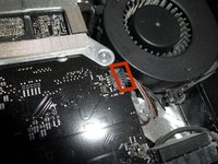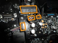 This position on the logic board has three closely-spaced connectors for the power button, ambient temp sensor, and the CPU fan. Unplug them.