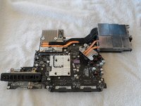 In the second photo you can see the replacement graphics card (Apple part #661-5135) I got from Impact Computers in Florida. It's a drop-in replacement. Even the adhesive foam and thermal sensor are already in place. In fact, you better not turn your back or you may forget which is which!