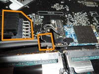 Almost there! Time to really go wireless by disconnecting the three WiFi and bluetooth antennas. These are tiny snaps so pull gently upward. Also, sneaking in from underneath, you'll find the iSight camera cable. Unplug it. This is one to look out for when you reinstall the logic board.