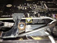 Carefully remove the graphics card temperature sensor cable from underneath the motherboard. Exercise caution when pulling it out towards the back/casing, since the cable is very delicate.
