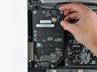 Squeeze the two display data cable connector arms together to unlock it from its socket on the logic board.