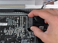 Disconnect the vertical sync cable in the upper left corner of the screen. Use the tip of a spudger to push on the connector's side tabs and gently walk it out of its socket.
