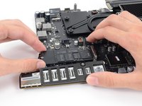 When reassembling your iMac, be very careful to align the exterior I/O ports correctly. The logic board can sit crooked even when secured with all its screws.