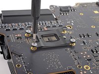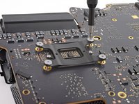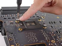 Remove the four 7.5 mm T8 screws from behind the GPU on the logic board.