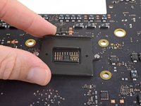 Lift the logic board straight up and out of the iMac. Be careful not to snag on any of the screw posts attached to the inside of the rear case.