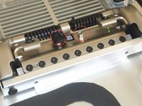 NOTE: once the screw is released, the coil spring will launch the plastic piece and screw that hold the spring! (It took me quite a while to find the first one.) I highly recommend covering the screw with something (pic3) as you remove the screw.