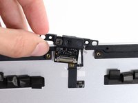 Remove two 4.3 mm T5 screws securing the iSight camera board to the top of the rear case.